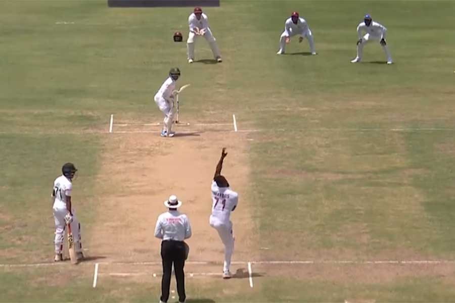 In pursuit of a target of 84 runs, West Indies lost three wickets for just 9 runs as Khaled Ahmed shone with the ball. He bagged all three wickets that the hosts lost at the end of day three.