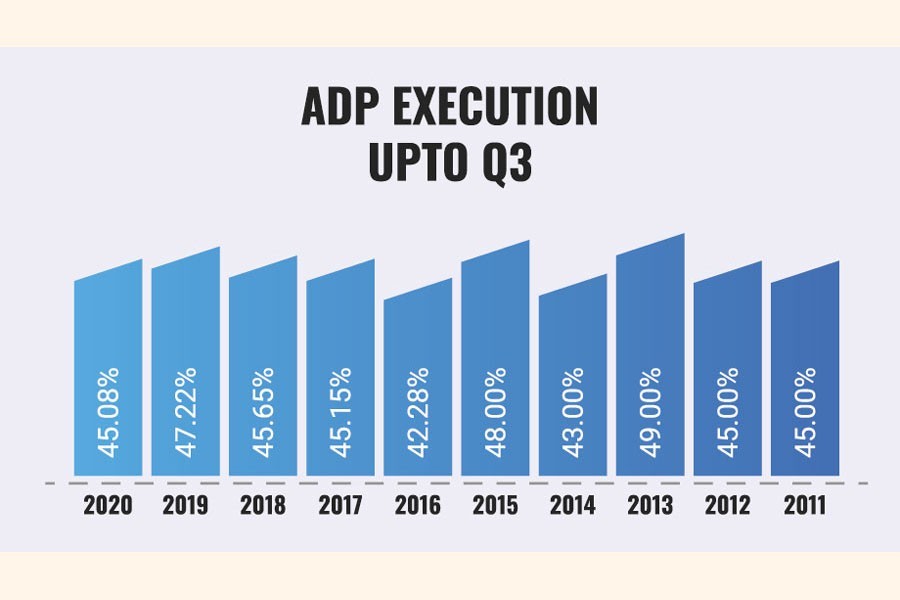 According to the Implementation Monitoring and Evaluation Division (IMED) report, all the government ministries and agencies executed 41.92 per cent of the ADP, 3.16 percentage points lower than that of the same period last FY20.