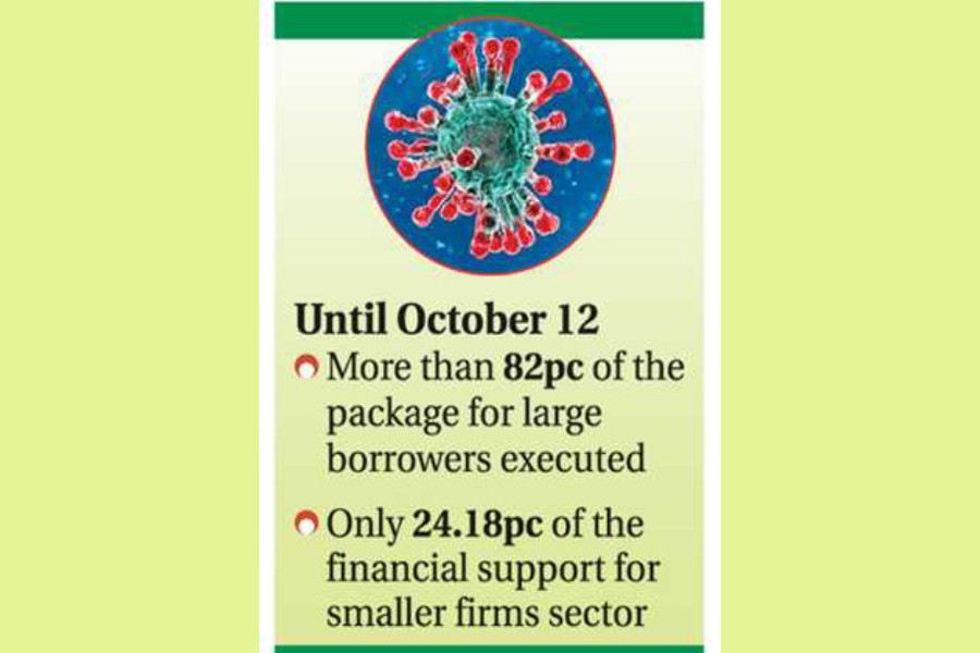 But the banks and NBFIs disbursed just Tk 48.23 billion of the stimulus package to the smaller firms, which is 24.18 per cent of the total Tk 200 billion financial support for the sector.