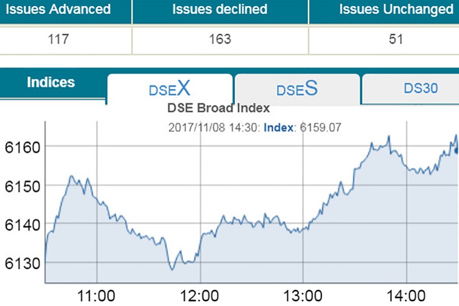 DSEX, the prime index of the DSE, which replaced the DGEN in four-and-a-half-year back, settled at 6,159, advancing 29.38 points or 0.48 per cent over the previous session.