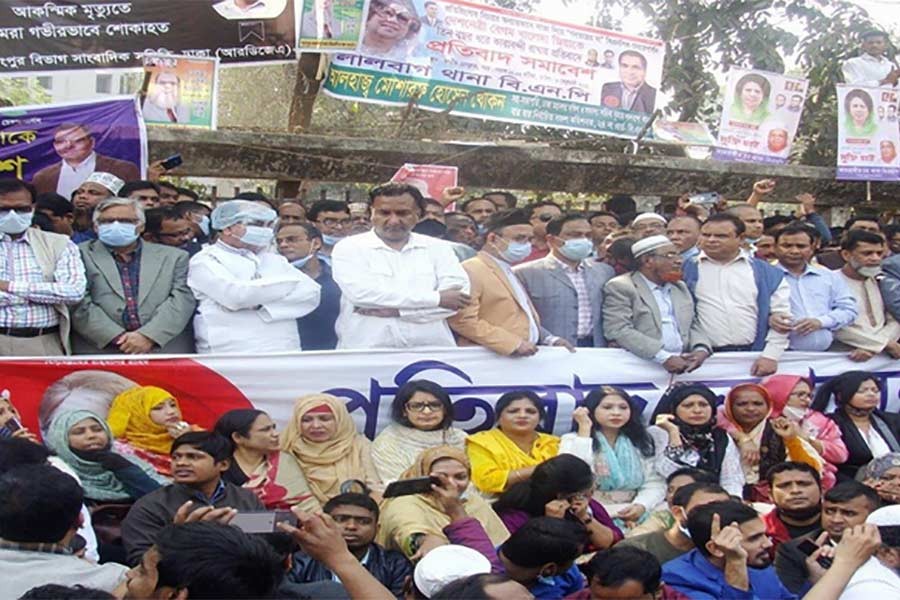 As part of BNP’s countrywide programme, its Dhaka south and north city units jointly arranged the programme in front of the Jatiya Press Club, marking the third anniversary of the imprisonment of its Chairperson Khaleda Zia in a graft case.