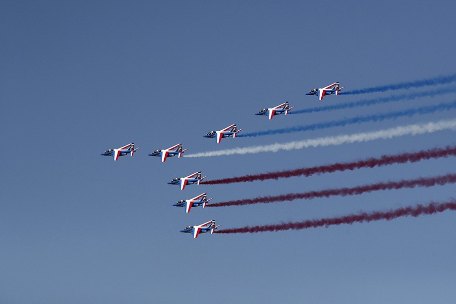 The air show also hosted top military officials reviewing fighter jets and other aviation developments, and is seeing a growing focus on electric planes and other planet-friendly technology.