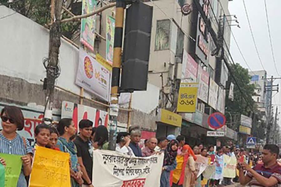 “This is not just a movement of CPB but of all parties. Our movement against oppression of women will not stop,” said CPB President Mujahidul Islam Selim from a human chain in front of the RAJUK building in Motijheel.