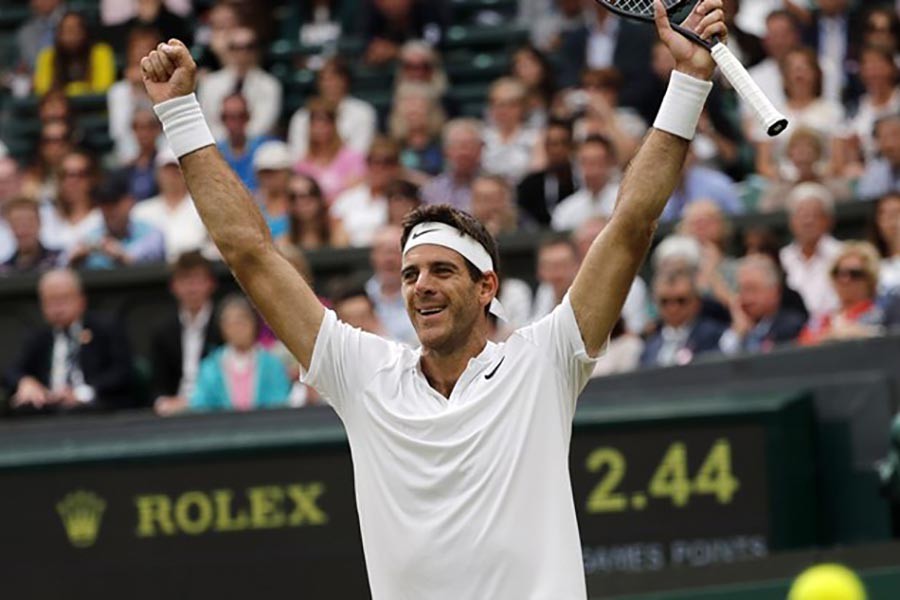 But Del Potro went on to claim a 7-6 (7-1) 7-6 (7-5) 5-7 7-6 (7-5) victory.