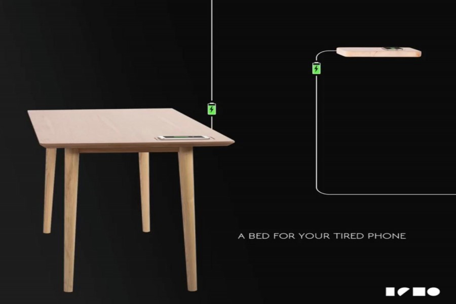 The first production of the innovation lab was the smart series: A line of furniture with integrated wireless charging for your phone. Given the phone is wireless charging enabled, if placed within the indicated area on the furniture the phone will charge with no unsightly wires around.