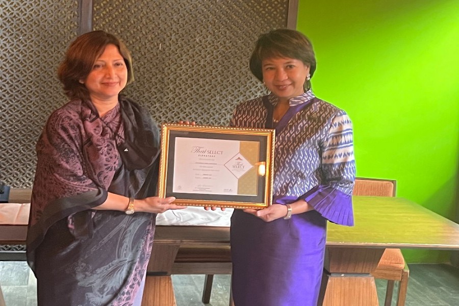 Makawadee Sumitmor, ambassador of Thailand to Bangladesh has handed over the certificate to Mrs Shamima Rahman, managing partner of Thai Emerald as chief guest.