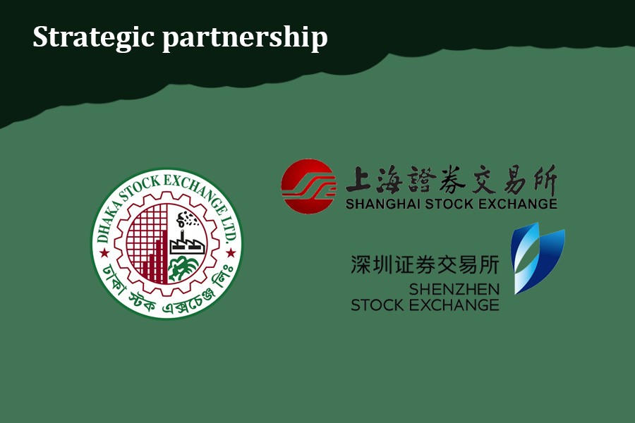 Dhaka Stock Exchange (DSE) has signed an agreement with the Chinese consortium of Shanghai Stock Exchange (SSE) and Shenzhen Stock Exchange (SZSE) to make the consortium a strategic partner.