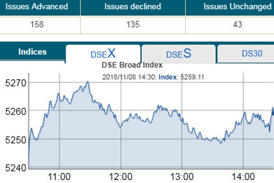 DSEX, the prime index of the Dhaka Stock Exchange, settle at the week at 5,259, advancing 16.89 points or 0.32 per cent over the previous day.