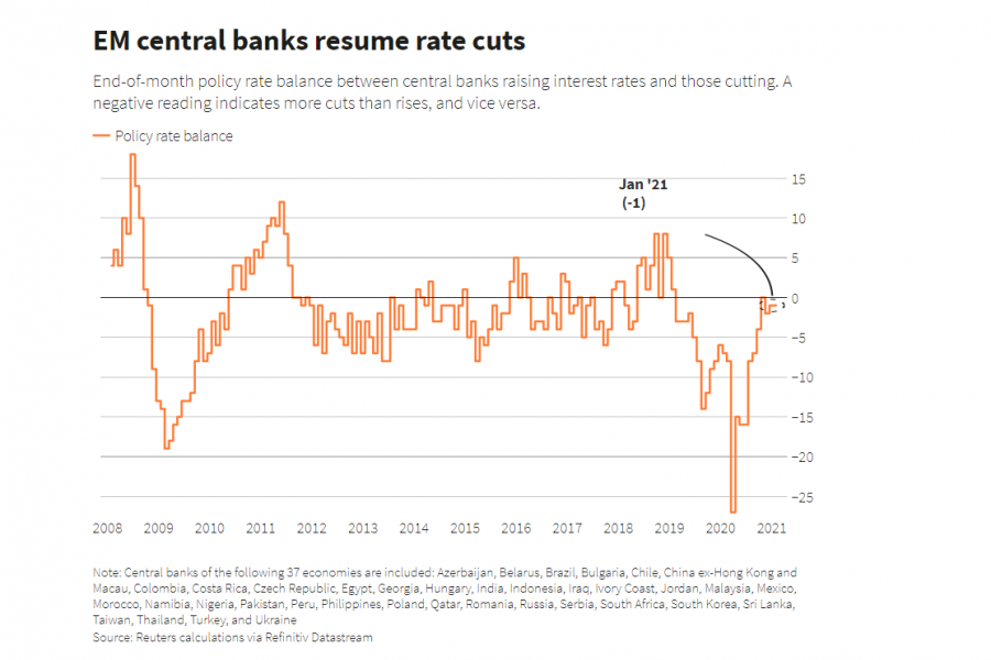 Emerging market central banks delivered just one interest rate cut in December, signalling the fading out of an easing cycle that had started in 2019 and had exceeded the cuts during the 2008 financial crisis and the 2010 euro crisis.