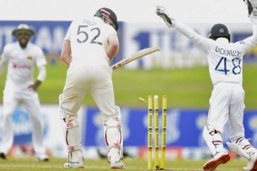 Chasing only 74, the tourists slipped to 14-3 as Dom Sibley and Zak Crawley fell to left-arm spinner Lasith Embuldeniya before captain Joe Root was run out for one after a mix-up with Jonny Bairstow.