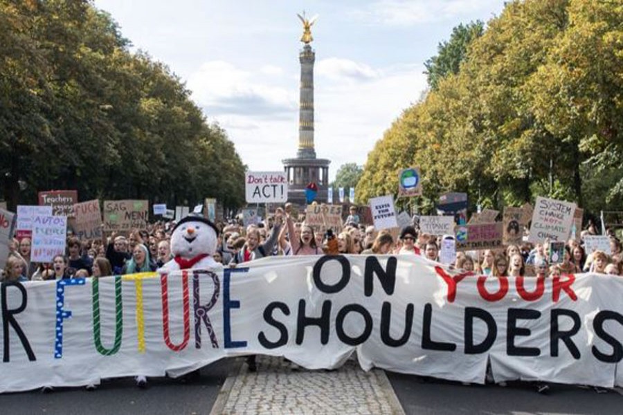 "We are not living sustainably today", Chancellor Angela Merkel told reporters as hundreds of thousands of protesters demanded immediate action.