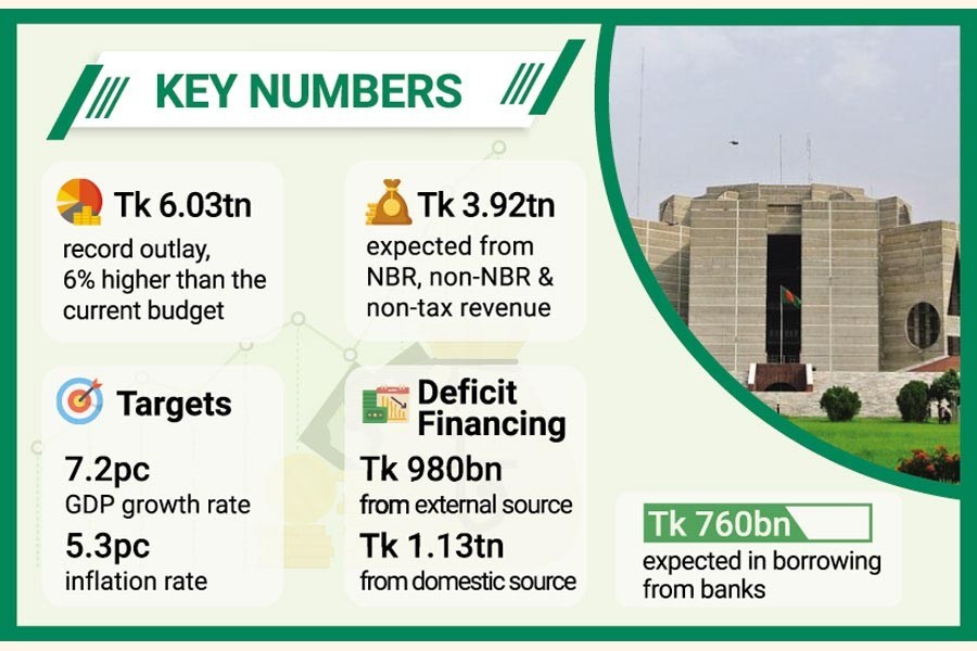 The bank borrowing for the FY2021-22 would be 7.0-plus per cent less than the revised target of Tk 820 billion for the outgoing FY2020-21.