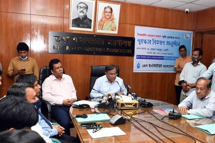 The minister made the remarks after handing over PIB-Sohel Samad Journalism Award at the meeting room of his ministry at the secretariat in the capital, reports BSS.
