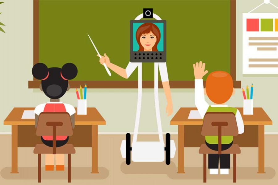 To take the technology to the next level, there have been reports of experimentation with physical robots in the classroom. Some of the inexpensive robots, which are developed as toys, could be augmented with software, artificial intelligence (AI), and speech capability to behave like teachers. For example, those robot teachers can show different objects and pronounce their names in native voice. With the voice recognition capability, such robot teachers can ask students to keep pronouncing repeatedly until perfection is reached. Moreover, these robot teachers by attaching tiny cameras and face recognition technologies could be made it possible to recognise every student of the classroom. Such proficiency will open the door to developing personal attachment and bond, which are quite useful for touching the souls of the learners.