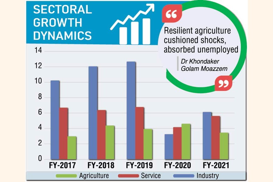 Agriculture, conversely, saved the situation as higher agricultural growth cushioned falling output and absorbed many unemployed people when the pandemic coronavirus upended life and livelihood.
