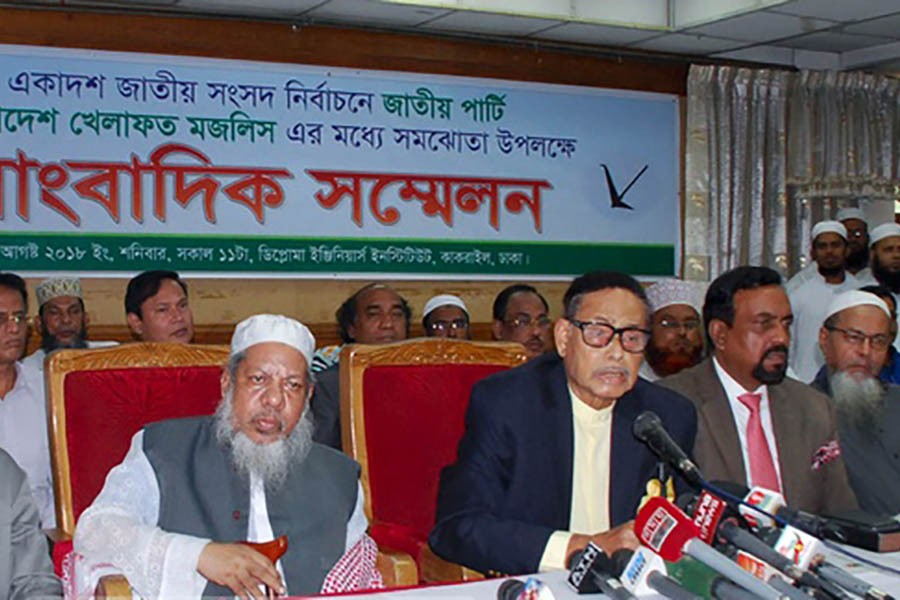 Both parties held a joint press conference after signing a partnership deal at a programme in Dhaka. Ershad and Khilafat Majlish chief Habibur Rahman were present at the programme, reports bdnews24.com.