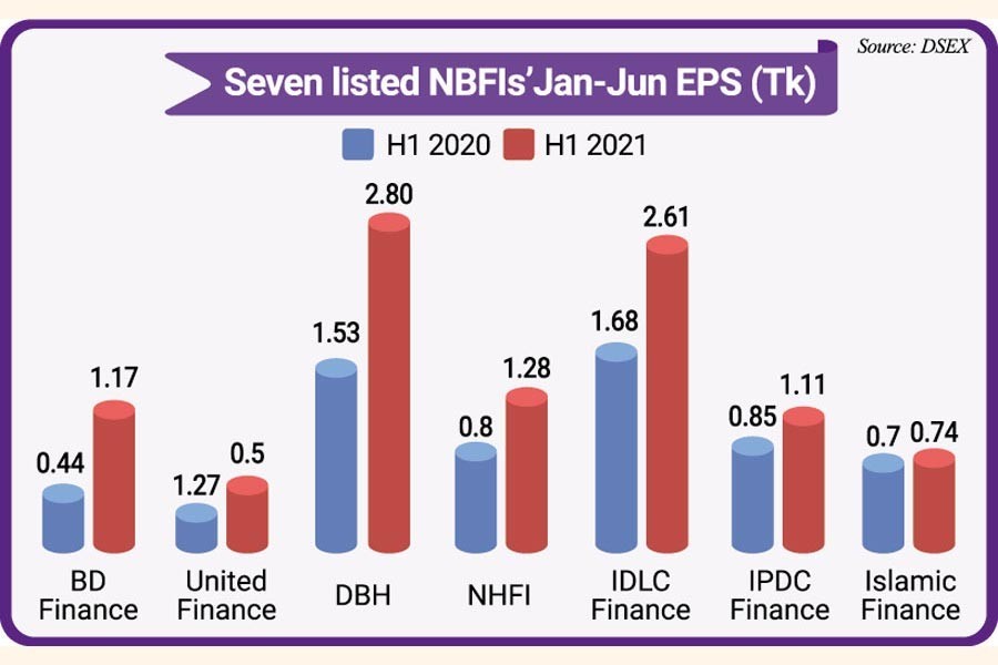 The earnings per share (EPS) of all seven NBFIs, which published unaudited financial reports as of Wednesday, increased during the January-June period of 2021, according to available data with the Dhaka Stock Exchange (DSE).