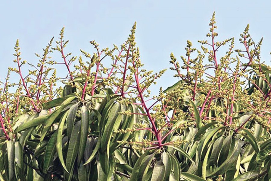The weather of the region seems suitable for smooth sprouting of mango buds so far and due to non-emergence much new leaves on the trees, there is a possibility of huge budding of mango trees this year.