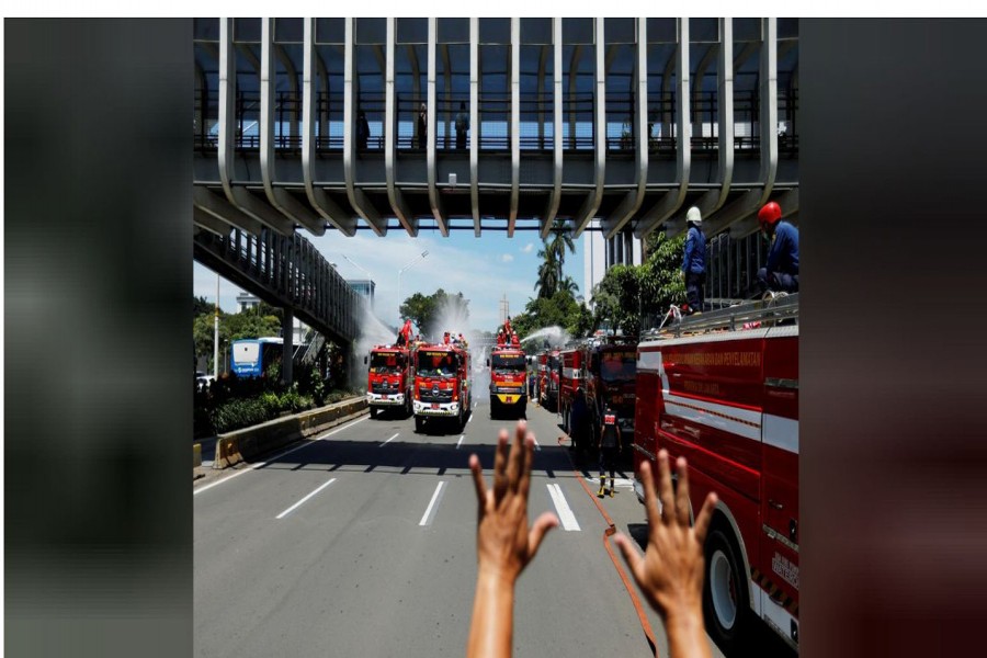 Back in Indonesia, telephone box-shaped disinfection chambers are being set up across the capital Jakarta, offering passers-by a quick blast to rid their clothes and skin of potential germs.