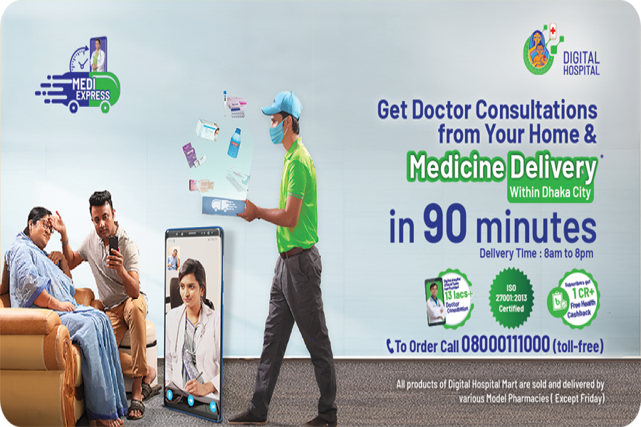 Digital Hospital,provider of over 1.3 million digital doctor consultations, has recently launched Medi Express - delivering all the necessary medicines to the doorstep of patients in Dhaka within a promise of just 90 minutes, according to a statement.