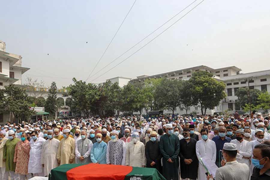 Chief Justice Syed Mahmud Hossain, judges of the Supreme Court’s Appellate Division and High Court Division, and Fisheries and Livestock Minister SM Rezaul Karim were among the participants of the funeral prayers for Moudud at the Supreme Court premises.