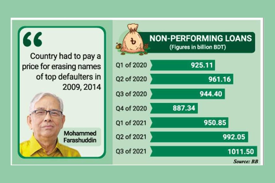 The volume of non-performing loans (NPLs) grew by nearly 14 per cent or Tk 124.16 billion to Tk 1011.50 billion as on September 30, from Tk 887.34 billion as on December 31, 2020, according to the central bank's latest statistics.