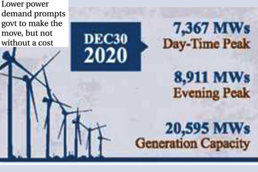 The government has kept almost all oil-fired power plants shut and import of expensive LNG to a minimum to reduce energy procurement costs owing to lower winter demand and sluggish economic activities.