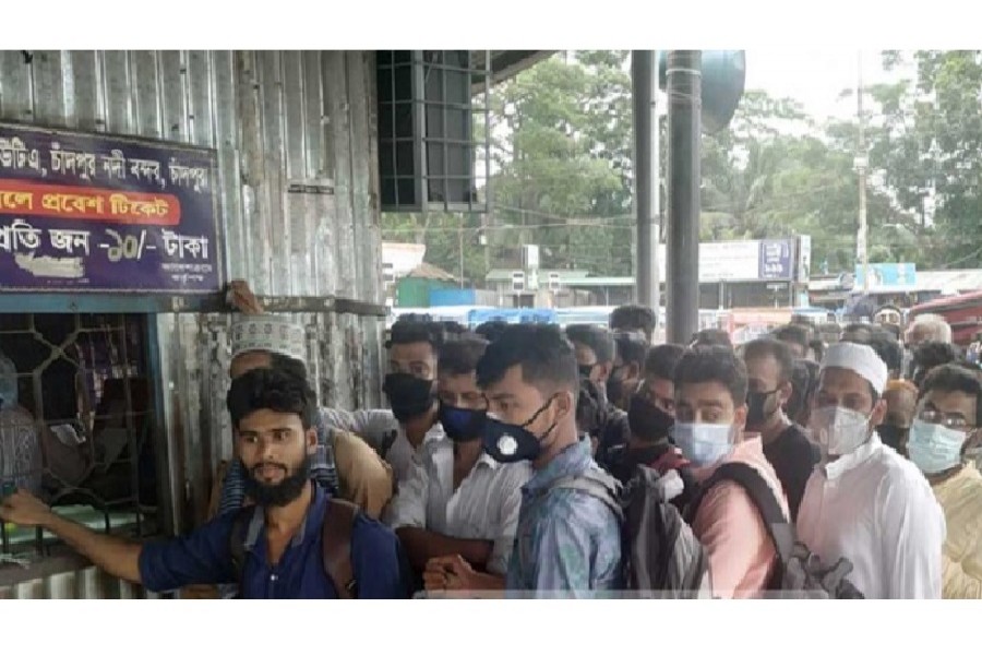 Passengers ignore social distancing norms at Chandpur launch terminal