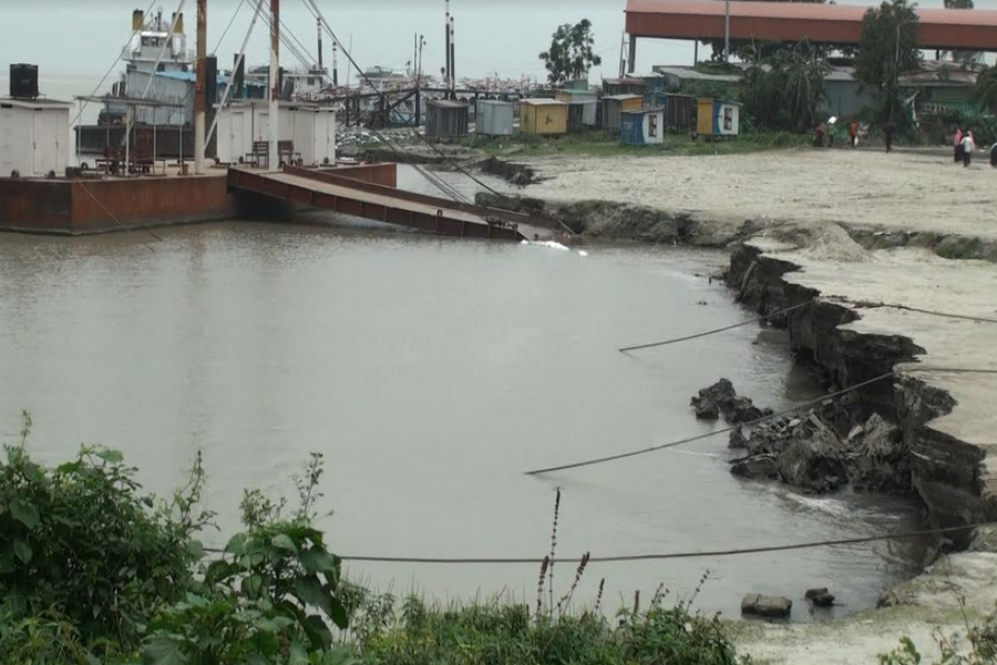 Bangladesh Inland Water Transport Authority (BIWTA) and Water Development Board (WDB) sources said they have already started throwing Geobags to protect the terminal.