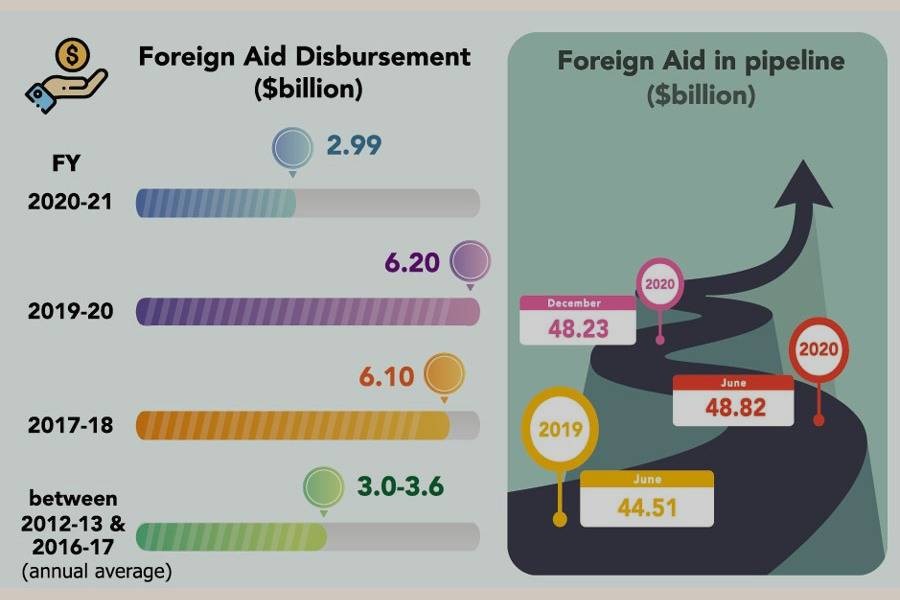 The ERD data showed that the undisbursed foreign aid at the end of financial year (FY) 2019-20 was at $48.82 billion.
