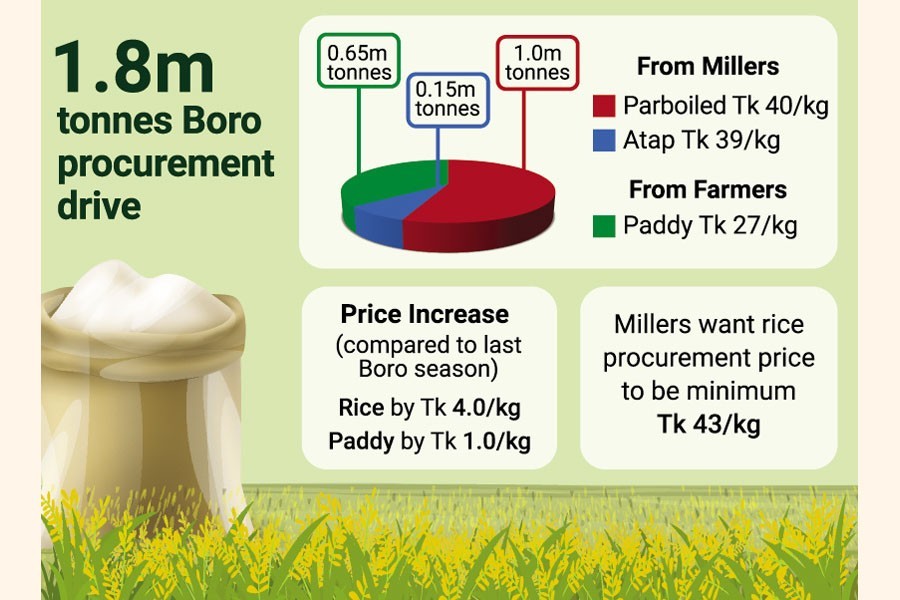 The procurement price for paddy has been increased by Tk 4.0 a kg and that of of paddy by Tk 1.0 a kg this year, disclosed Mr Majumder.
