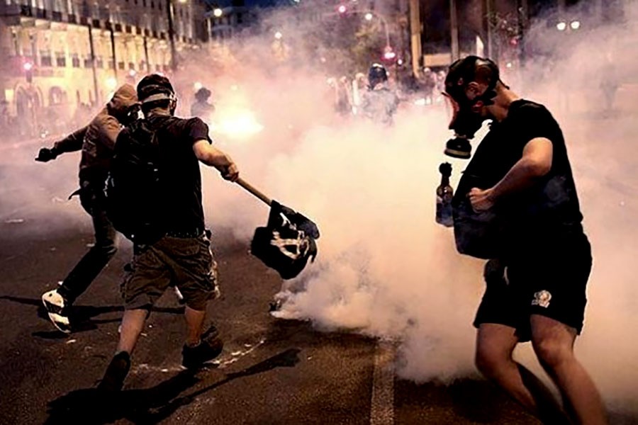 Protesters threw stones, flares and petrol bombs at police who responded with teargas.