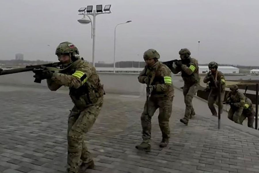 In a dramatic training video released by Russia's internal security service, the FSB, special forces armed with Kalashnikovs are shown battling to secure the venue.