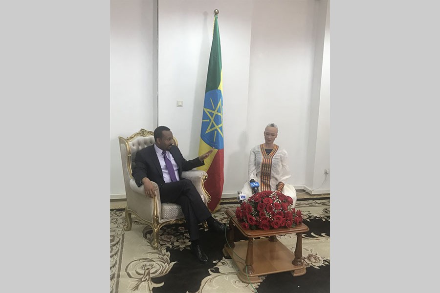 Designed by Hong Kong firm Hanson Robotics, Sophia has been programmed to speak Amharic, Ethiopia's official language. She also speaks English.