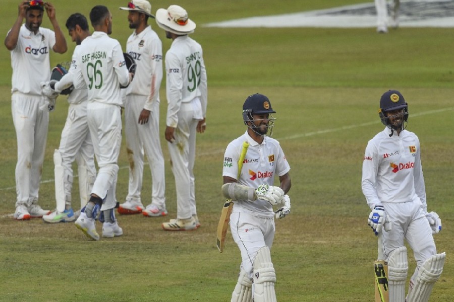 Both overnight batsmen, Mushfiqur Rahim and Liton Das scored a 50 each. Liton fell prey to Vishwa Fernando, for 50, Mushfiqur remained unbeaten on 68.