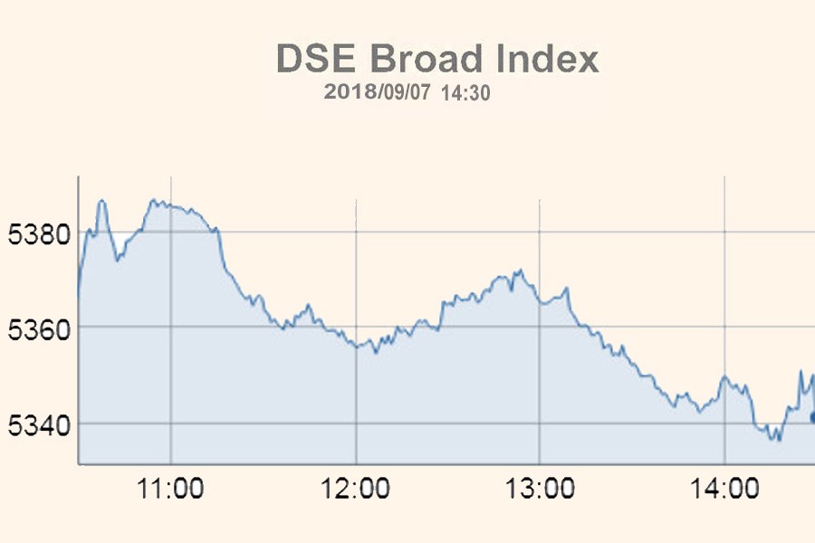 DSEX, the benchmark index of the DSE, settled at 5,341, losing 24.74 points or 0.46 per cent over the previous session.