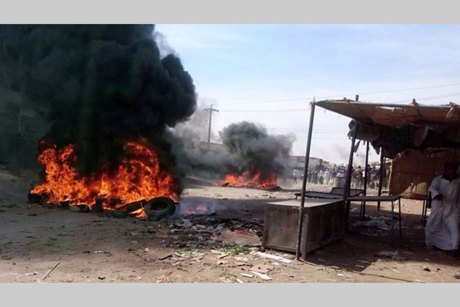Hundreds of demonstrators blocked a road near a football stadium in the capital, Khartoum, on Sunday before clashing with riot police.