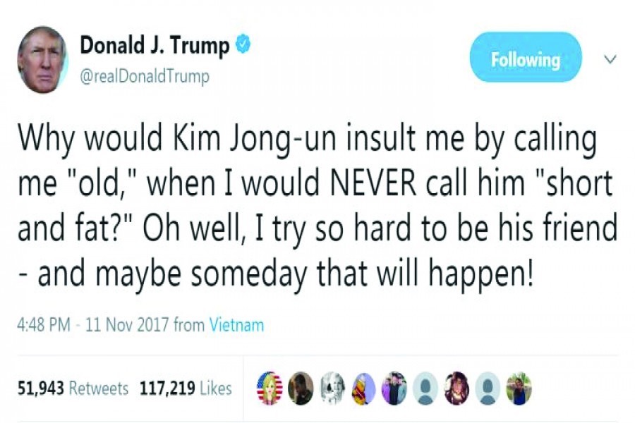 President Trump's tweets have caused a major loss of face for him and his country on one major international issue, for sure. His mindless and often senseless tweets have given North Korea the chance to expose the type of President the US voters have elected whose threats have turned out as empty ones. In fact, those threats expressed by the President in his tweets have given them the opportunity to reassert to the world that North Korea was not just moving ahead with their nuclear ambitions confidently but also to call the US President as a dotard. It was an insult with which many in the US and outside, notwithstanding their dislike for North Korea and its leader, did not seem to totally disagree.