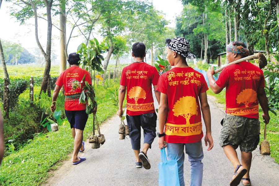 Giving preference to planting fruit trees, the Folodo Bangladesh Foundation has been trying to raise a fruit tree plantation movement all over the country for 10 years. The Foundation's volunteers think that their job of planting local fruit trees will create awareness among others about their responsibilities in tackling the harmful effects of global warming and carbon emissions. They think the planting of fruit trees at a higher rate will facilitate a significant and combined contribution to the country's nutrition, economic development and protection of biodiversity and global environmental development.