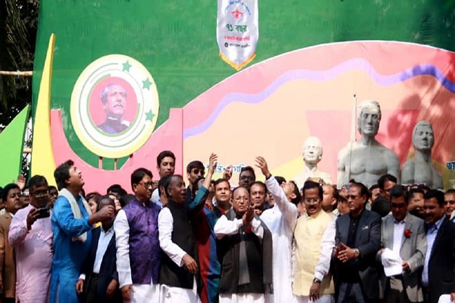 Awami League (AL) Advisory Council Member Tofail Ahmed inaugurating BCL’s 71st founding anniversary at Dhaka University campus on Saturday. Photo: UNB