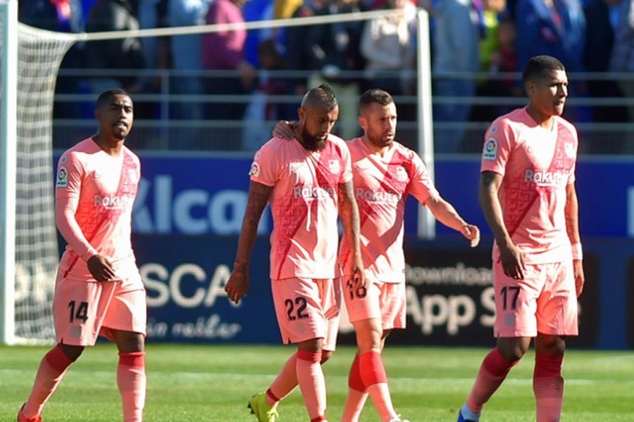 An under-strength Barcelona drew at La Liga's bottom club Huesca on Saturday.