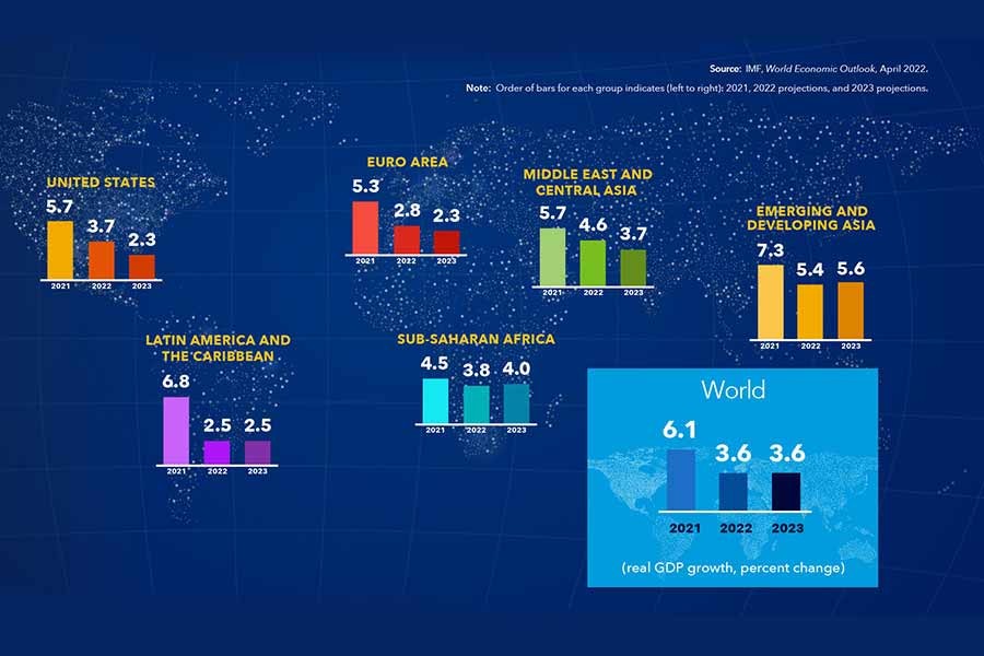 For 2022, it forecast inflation of 5.7 per cent in advanced economies and 8.7 per cent in emerging market and developing economies, a jump of 1.8 and 2.8 percentage points from January's forecast.