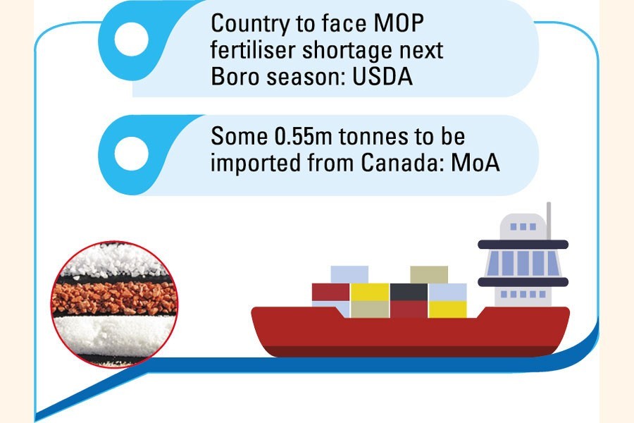 Published recently, the report says Bangladesh might face challenge in sourcing the muriate of potash (MOP) fertiliser -- an input hugely needed for cropping in Bangladesh as also elsewhere.