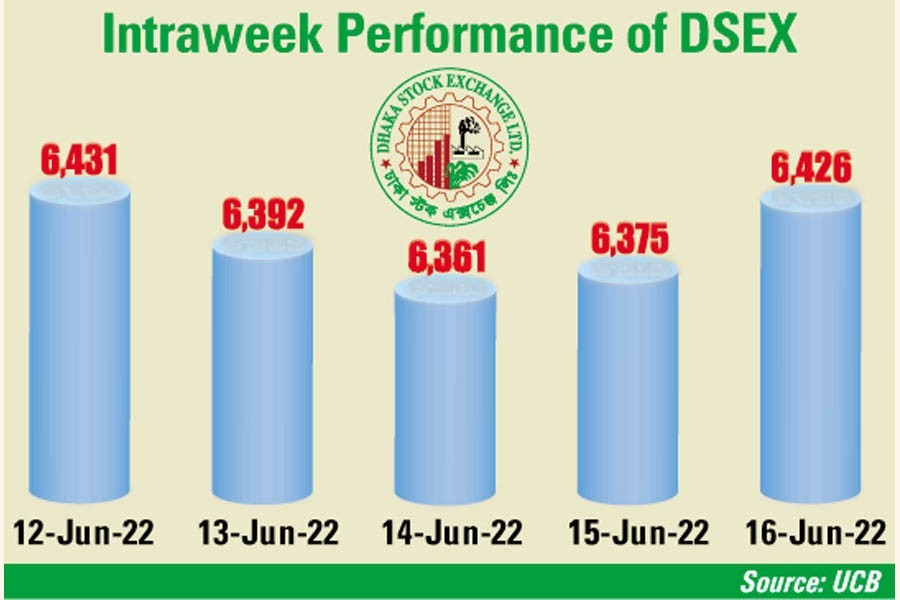 Week on week, DSEX, the key index of Dhaka Stock Exchange (DSE), shed 54.56 points or 0.84 per cent to settle at 6,425.74, after gaining over 242 points in the past two weeks.