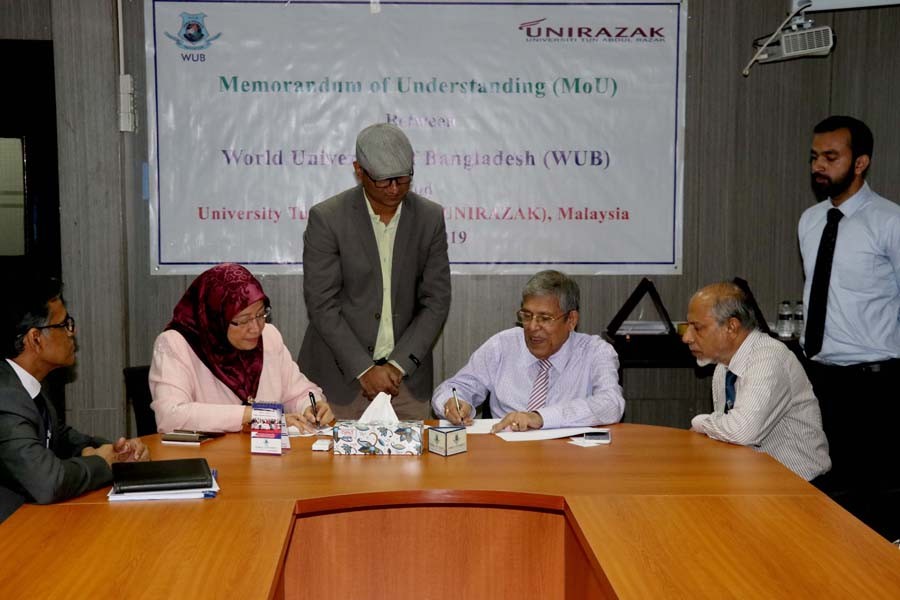 World University of Bangladesh (WUB) has signed a Memorandum of Understanding (MoU) with the Universiti Tun Abdul Razak (UNIRAZAK) at its main campus in the capital, says a media release.