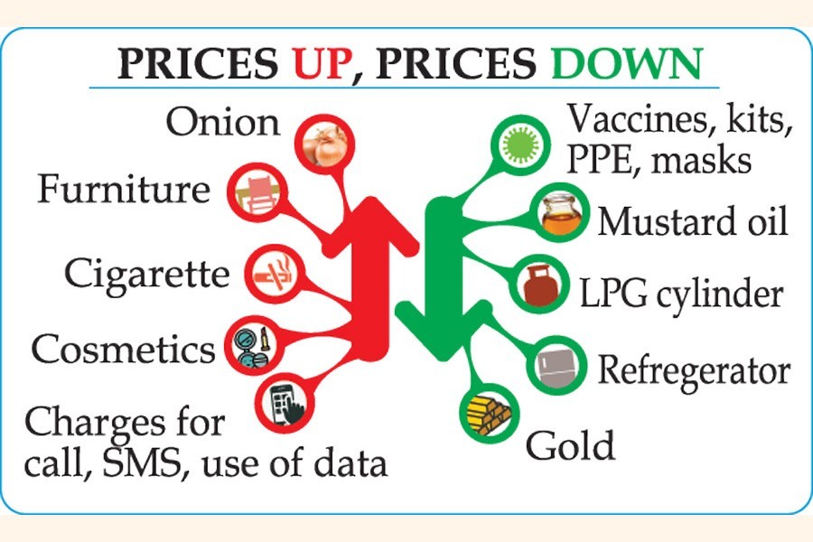 Local medical products like coronavirus test kit, personal protective equipment, surgical mask, face mask, medicine to treat COVID-19, hand sanitiser, local mustard oil, imported gold, fridge, air-conditioner, detergent, sanitary napkin and diaper may also fall in prices.