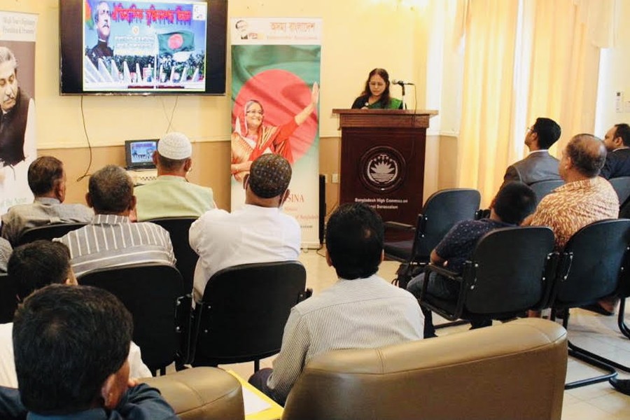 In her speech High Commissioner Nahida Iqbal highlighted the significance of the day in the history of the nation. Later, a documentary on the liberation war of the country was screened.