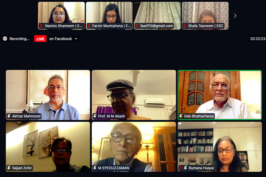 The closing session chaired by Professor Dr M.M. Akash, Chairman, Department of Economics, University of Dhaka, went beyond the formal setting of conversation and flowed candidly among the special guests - Dr Sajjad Zohir, Executive Director, Economic Research Group, Dr Debapriya Bhattacharya, Distinguished Fellow, Centre for Policy Dialogue; led by Dr Syed Akhtar Mahmood, Former Lead Private Sector Specialist, World Bank Group.