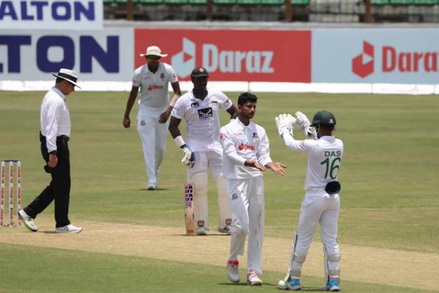 Bangladesh looked in front with left-arm spinner Taijul Islam particularly appearing unplayable for the Lankan batters.