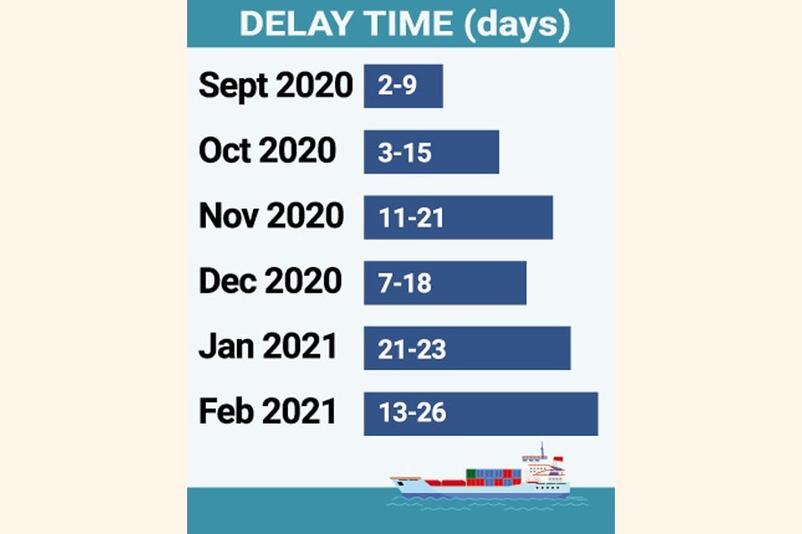 In March, delay time is rising as essential commodities are being unloaded on an emergency basis for the upcoming Ramadan fast.